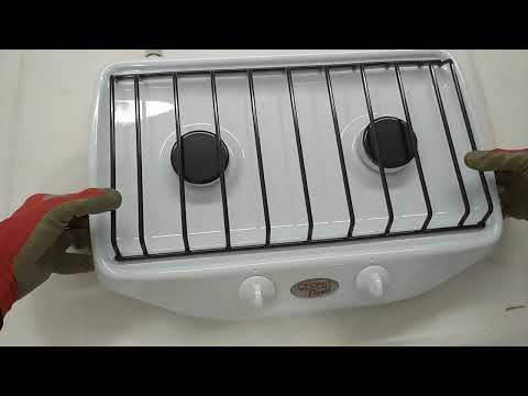 Стальная газовая плита разработанная специально для использования в автодомах. Подключается к балонному газу и имеет отдельную кнопку для создания искры и поджига конфорок (работает без батареек)