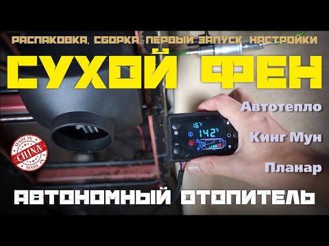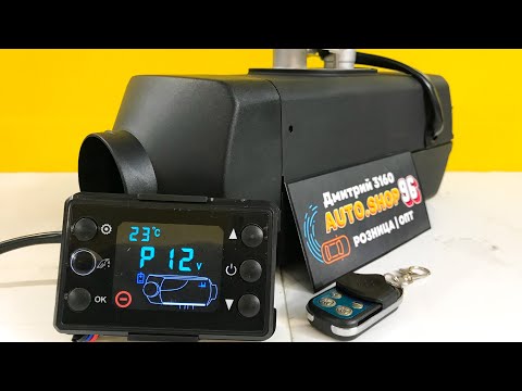 Отопитель работает от сети 12В (для питания вентилятора, пульта и свечи в камере сгорания). Информативный экран с возможностью выставить мощность работы от 1 до 5кВт или температуру, которая будет поддерживаться автоматически