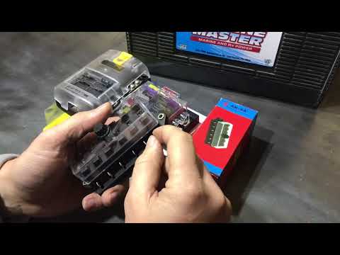 Есть также блок на 12 выходов, если 6 вам мало. Такой предохранительный блок - основа подключения потребителей в автодоме - удобный и безопасный. Максимальный суммарный ток потребителей - 125А, а на каждый выход можно подавать до 25А