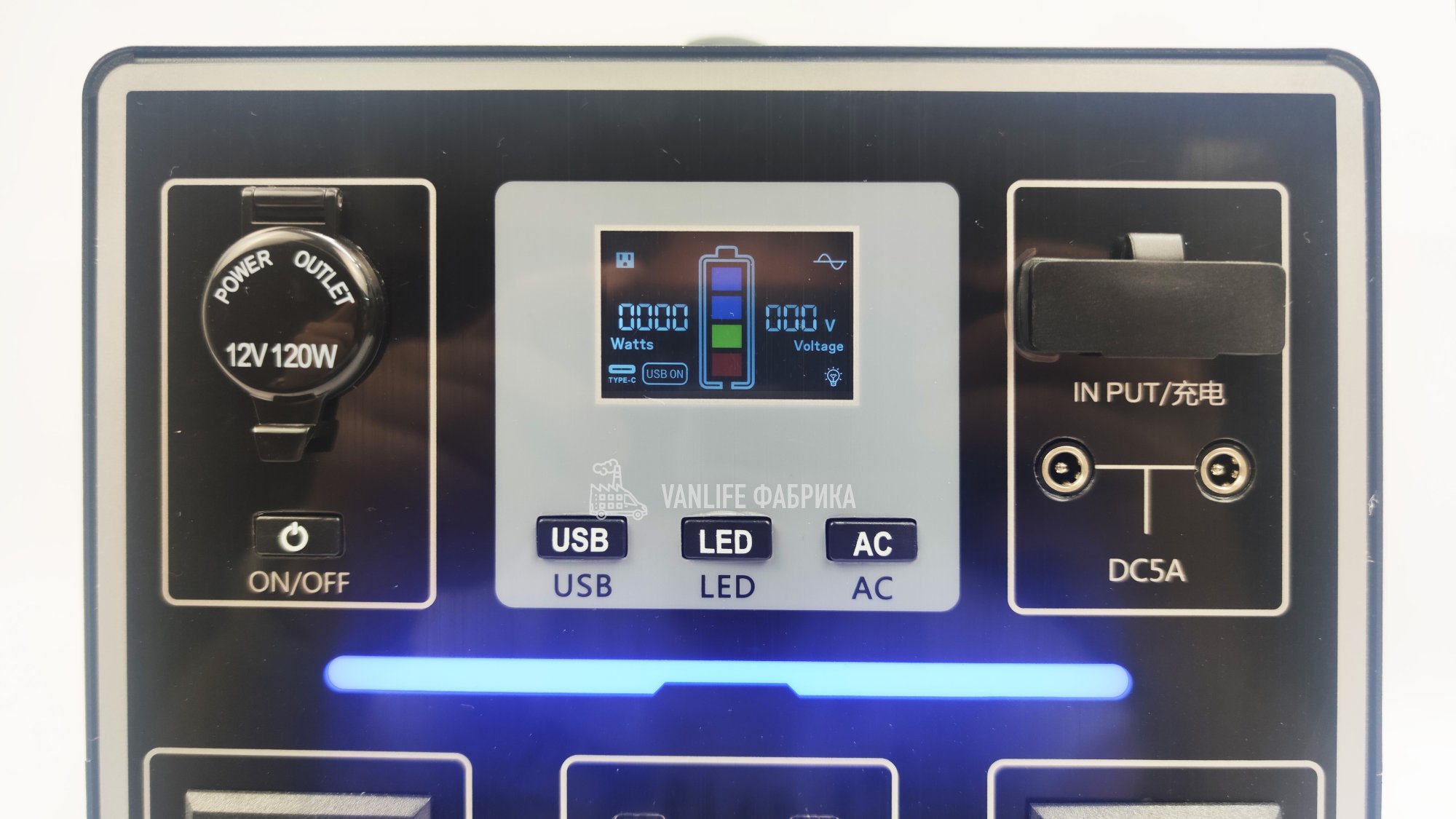 - Авторозетка: Выход прикуривателя 12V 120W с защитной крышкой также находится спереди — удобно подключать автохолодильник.