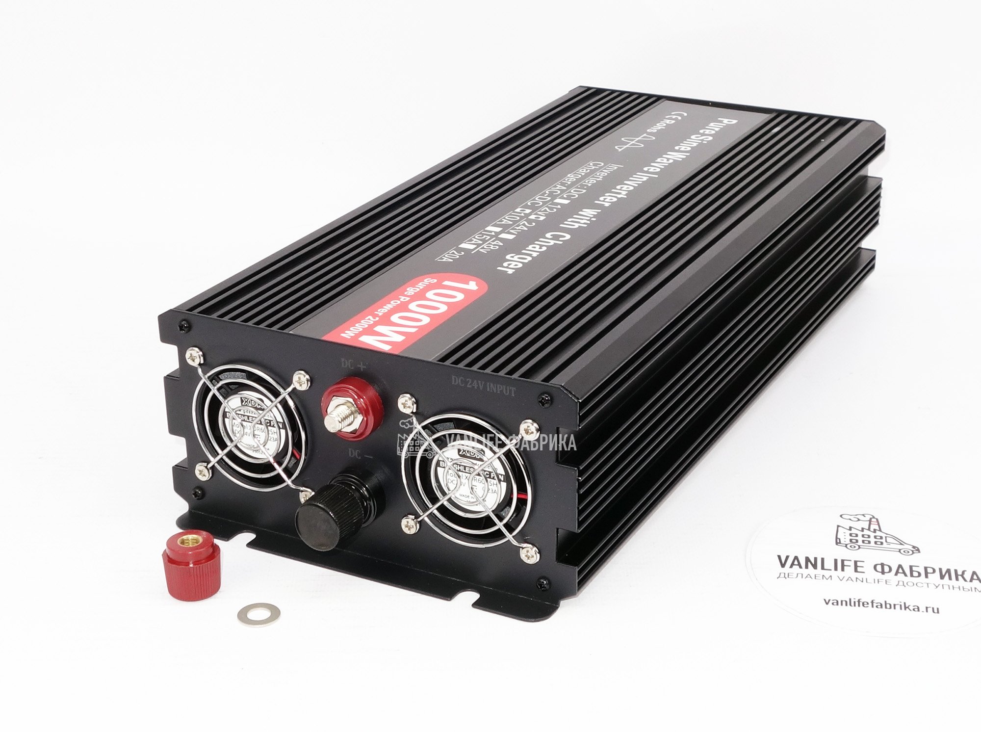 Подключите внешний кабель питания в разъем на лицевой панели. Инвертор начнет транслировать энергию на розетку и автоматически заряжать ваши аккумуляторы 24В.