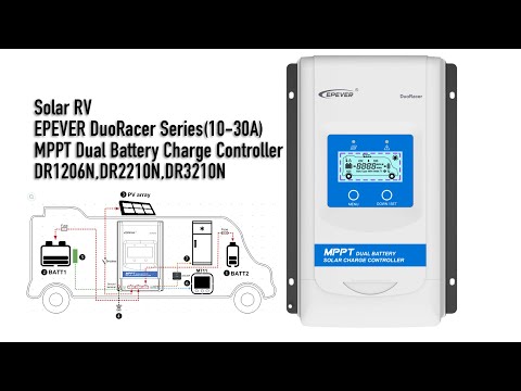 Epever DuoRacer 30A DR3106 — MPPT-контроллер солнечной зарядки, созданный специально для мобильных и автономных систем: автодомов, кемперов, прицепов, катеров и лодок. Он способен одновременно заряжать основную бытовую батарею и поддерживать заряд стартового аккумулятора. В комплекте поставляется внешний дисплей, обеспечивающий удобный просмотр параметров и управление основными функциями контроллера.