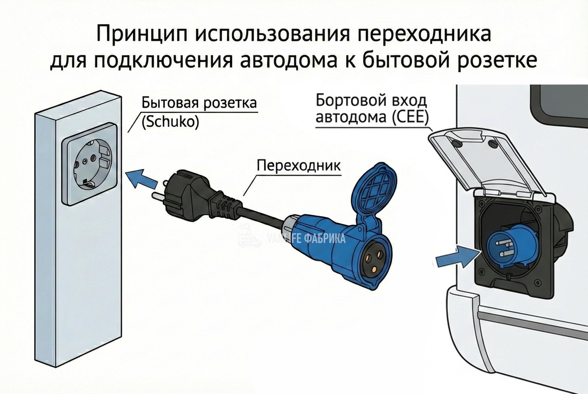 Надежный силовой адаптер для подключения вашего кемпера, каравана или прицепа-дачи к стандартной домашней электросети 220В.