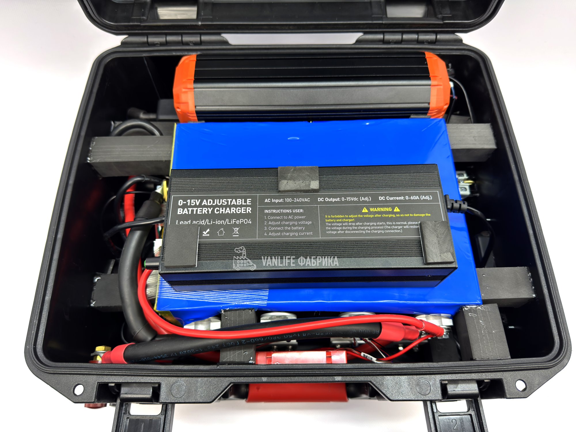 Портативная электростанция ручной сборки нашей мастерской. Мы объединили огромную емкость 300Ач (LiFePO4), надежный инвертор с чистым синусом и мощную зарядку в одном ударопрочном кейсе. Это решение для тех, кто хочет получить полноценный объем энергии для жизни в переносном формате.