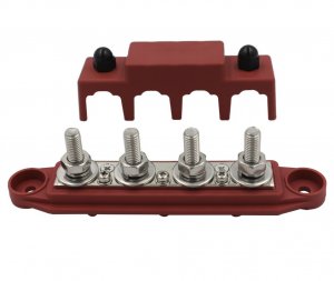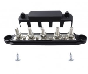 Силовая шина для подключения потребителей к АКБ на 4 подключения М8. Максимальная сила тока 300А. Черная. В комплекте 1шт