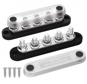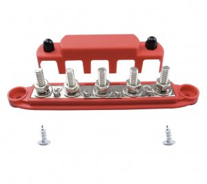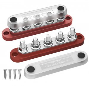 Подключение к блоку реализовано болтами М8. Корпус пластиковый, с защитной крышкой и крепежными отверстиями