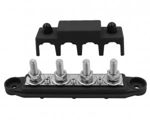 Подключение к блоку реализовано болтами М6. Корпус пластиковый, с защитной крышкой и крепежными отверстиями
