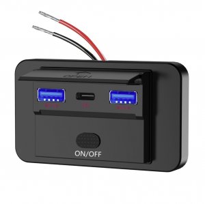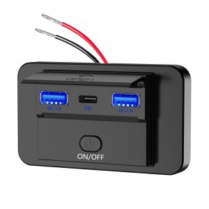 Универсальная встраиваемая розетка с зарядками USB и TypeC. Цвет подсветки - синий