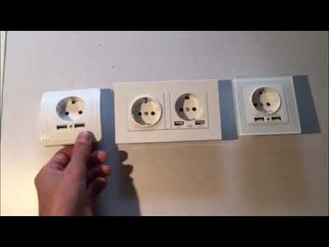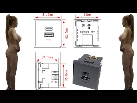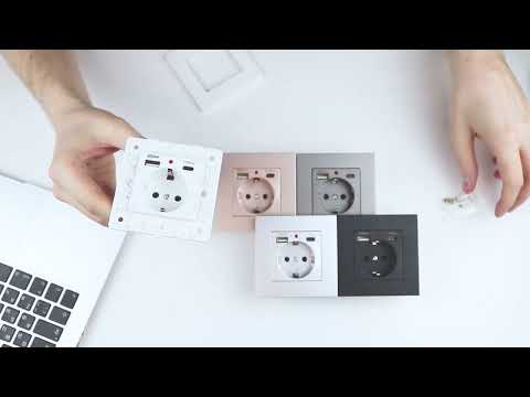 Универсальная встраиваемая розетка с зарядками USB и TypeC. Цвет подсветки - синий