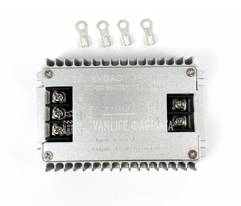 Компактное зарядное устройство (бустер) предназначено для правильной зарядки тягового LiFePO4 аккумулятора от бортовой сети автомобиля или катера. Устройство работает в широком диапазоне напряжений (8–36 В) и выдает стабилизированные 14.5 В, необходимые для 100% заряда литиевой батареи, независимо от просадок напряжения в сети.